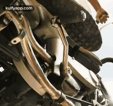 Komaram Bheem (Jr. NTR) riding a motorcycle through a forest, kicking up dust.