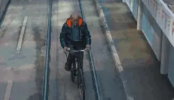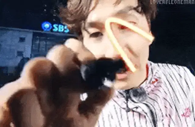 Komaru Aibek, the adorable gray and white cat, sits attentively, looking around with wide eyes.