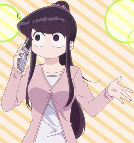 Komi Shouko from Komi Can't Communicate looks confused while talking on an old-style flip phone.