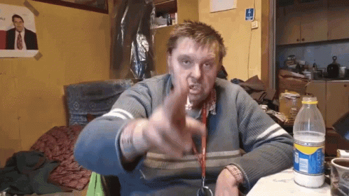A man, likely Krzysztof Kononowicz, performs a dramatic 'blessing' gesture, throwing powder that ignites.