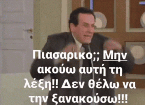 Konstantinos Katakouzinos from Konstantinou Kai Elenis reacts strongly to the word 'Piasariko'.