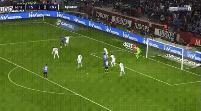 Nwakaeme receives the ball in the penalty area and takes a shot, which is blocked by the defense during a soccer match.