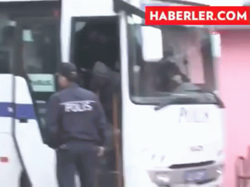 Police officers escort a man on crutches from a bus in Konya, related to a drug operation.
