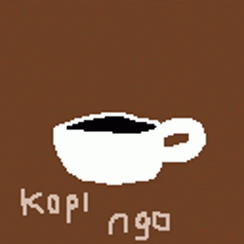 A charming pixel art drawing of a cup of coffee, featuring the words 'Kopi Ngo'.