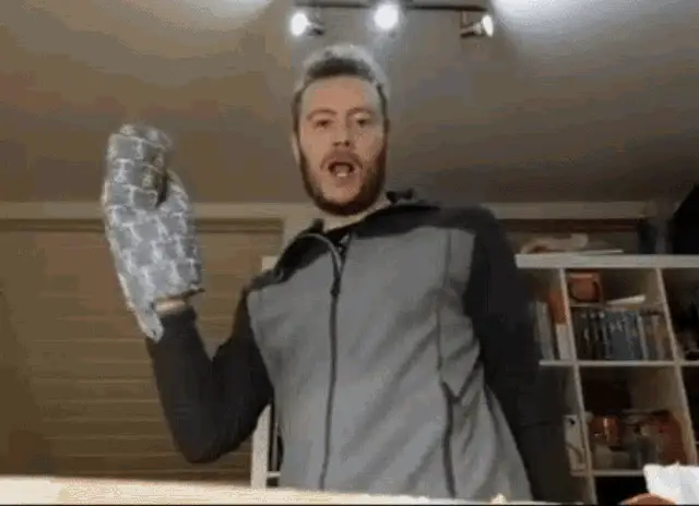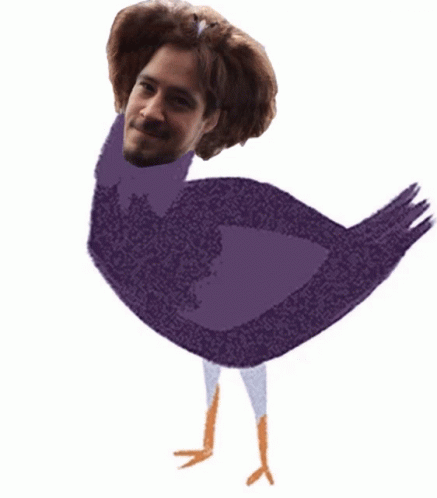 Koseklubben Trash Dove, a purple bird, vigorously bobs its head up and down.