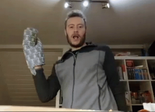 A man with a beard wearing a pot holder on his hand, gesturing and talking, likely part of a Koseklubben Twitch stream.