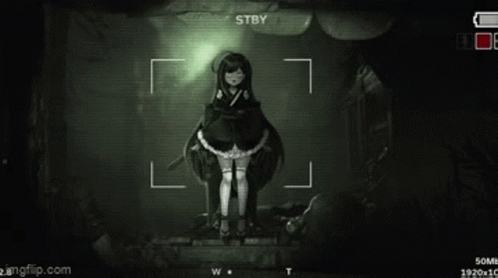 Kotori Hikari, a Vtuber from Kudalive, appears in a creepy horror game scene with a night vision filter.