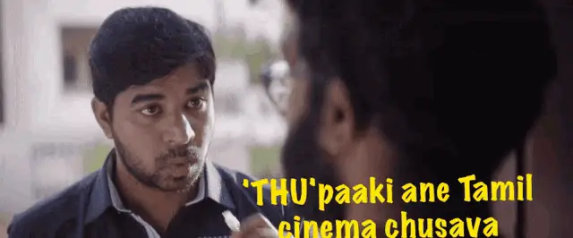 Koushik and Kowshik in a scene from Ee Nagaraniki Emaindi, with the caption 'that's why you're like this'.