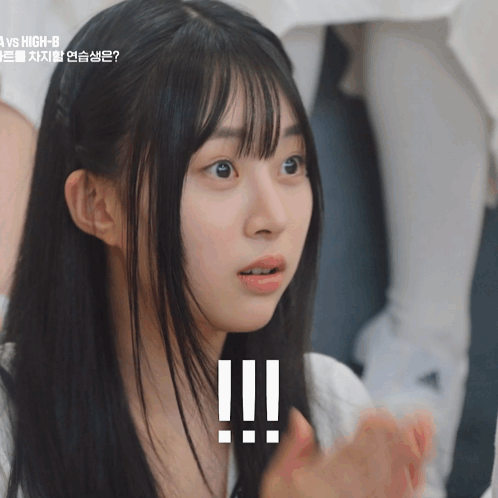 Kpop idol Jihyun reacts with a shocked expression, covering her mouth, during a 'R U Next?' segment.