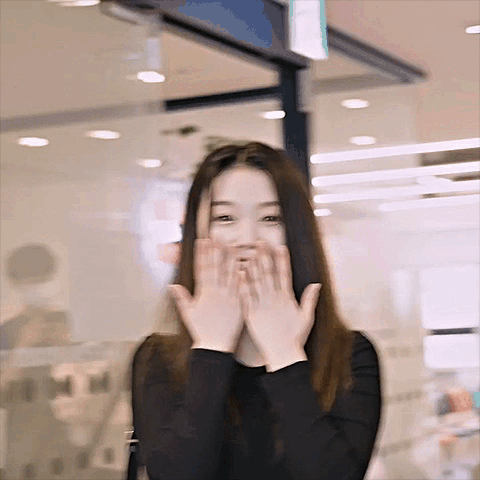 K-pop idol Gong Yubin covers her face shyly with her hands before revealing a sweet smile.