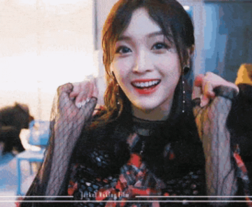 Kpop idol Xuan Yi from Wjsn (Cosmic Girls) blows a sweet kiss to the camera, smiling brightly.
