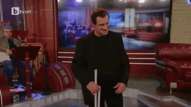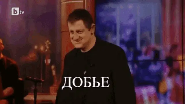 Krasi Radkov on stage in a black suit, performing in front of a microphone with the bTV logo visible.