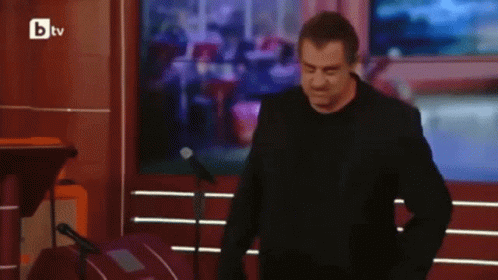 Krasi Radkov delivers a funny performance on Shouto Na Slavi, gesturing and interacting with the audience.