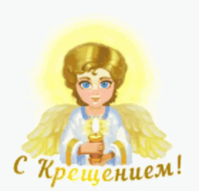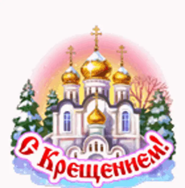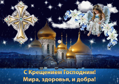 A beautiful digital greeting card for Epiphany, featuring an Orthodox church, a golden cross, and an angel.