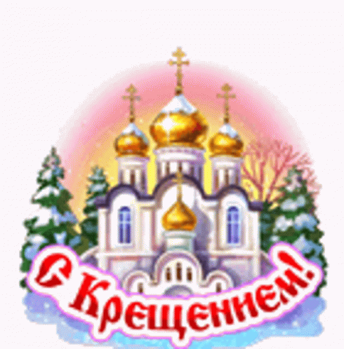 Animated greeting for Epiphany, featuring a Russian Orthodox church and wishes for peace, joy, and love.
