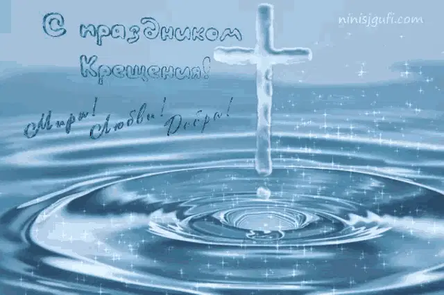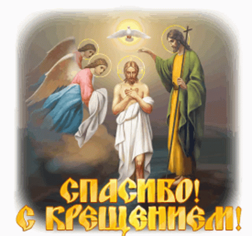 a painting of jesus being baptized by two angels and the words спасибо