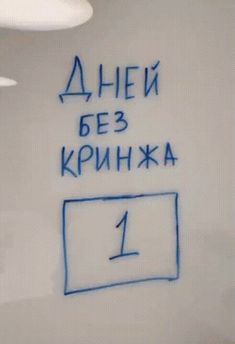 Whiteboard showing 'Days without cringe' counter being reset from 1 to 0.