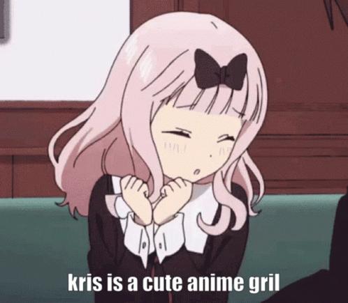 Kris, a cute anime girl, also associated with Chika and Genshin Impact, smiling with a bow.