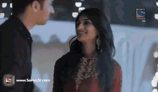 Shaheer Sheikh and Erica Fernandes share a sweet moment, with Shaheer gently touching Erica's face.