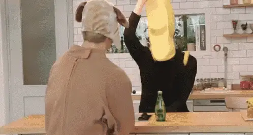 Jisoo plays the Kartrider Rush+ Balance Game, making a banana selection in a themed room.