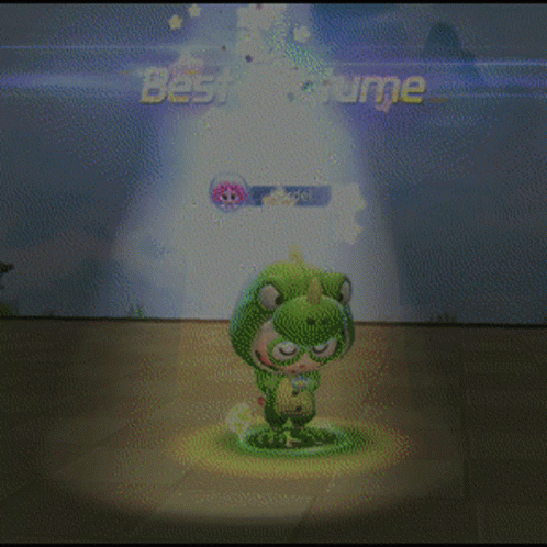 Kordel, the cute character from Kartrider Rush Plus, wins Best Costume in a green dinosaur outfit.