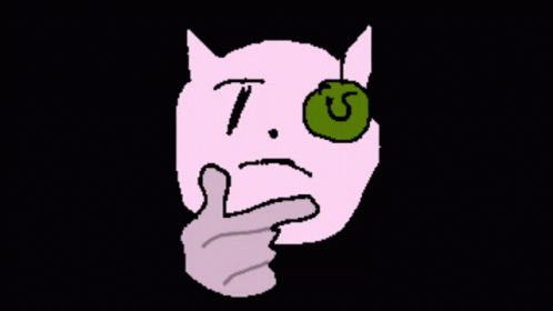 Ktooooyaaa Ktoshka, a pixel art character, in a thinking pose, rotating and changing colors with a scratched effect.