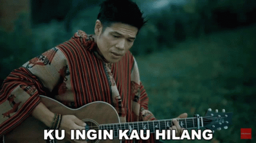 Baim performs his song 'Ku Ingin Kau Hilang' while playing an acoustic guitar in a natural setting.