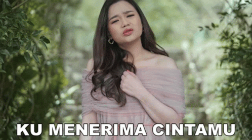 Aulia sings 'Ku Menerima Cintamu' in a pink dress, expressing emotion in a beautiful garden setting.