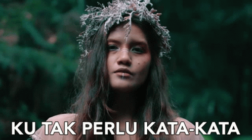 Woman with a nature-inspired crown and 'Ku Tak Perlu Kata Kata' text, from The Overtunes.