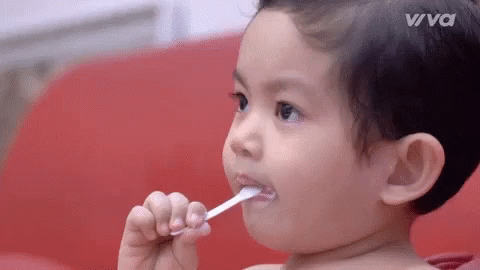 Kubi Minh Cuong, also known as Em Be, enjoys eating with a spoon, looking yummy.
