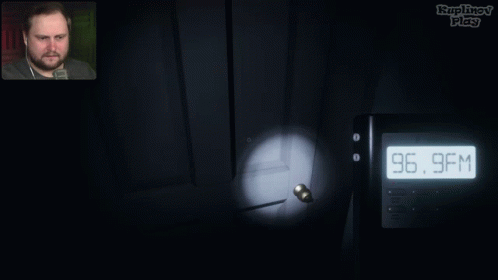 Kuplinov reacts with shock and a scream as a spirit box gives a sign in a dark room.