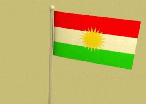 The vibrant red, white, and green Kurdish flag, featuring a yellow sun, waves proudly in this animation.