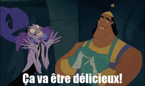 Yzma and Kronk from The Emperor's New Groove reacting to something delicious, with the caption 'It's going to be delicious!'