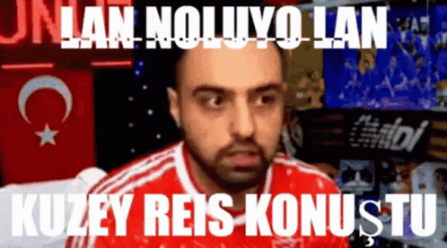 Umidi Reis reacts with shock to 'Kuzey Reis Konuştu' (Kuzey Reis Spoke) with a Turkish flag in the background.