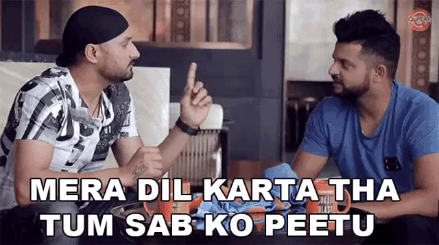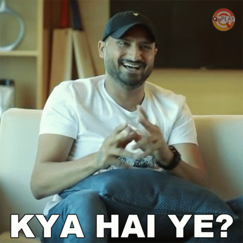 Harbhajan Singh reacts with a laugh, asking 'Kya Hai Ye?' (What is this?) while sitting on a couch.