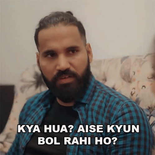 Sanju Sehrawat asks 'Kya Hua? Aise Kyun Bol Rahi Ho?' while sitting on a couch, expressing concern.