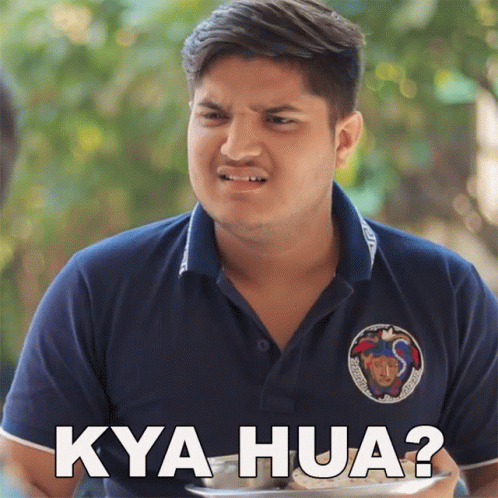 Mridul, from The Mridul, asks 'Kya Hua?' while holding a plate, wearing a blue shirt.