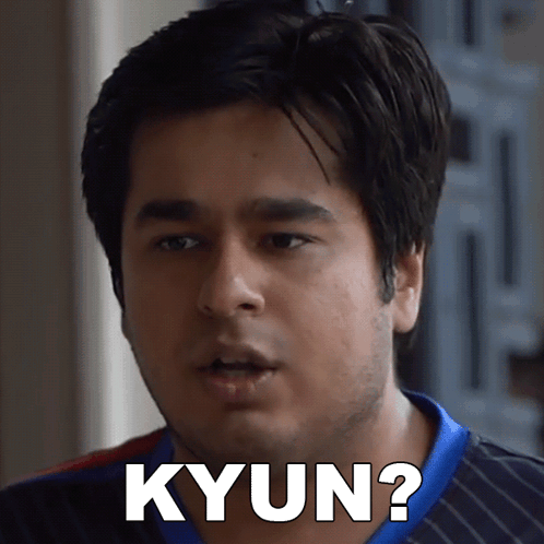Umesh Kripalani, wearing a blue and black shirt, asks 'Kyun?' (Why?) with a questioning expression.