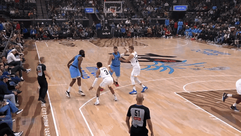 a basketball game is being played with the number 51 on the referee 's jersey