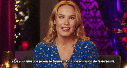 Ana Girardot from La Flamme smiles while discussing finding someone on reality TV.
