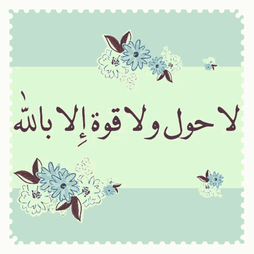 A decorative postage stamp featuring elegant Arabic calligraphy of 'La hawla wa la quwwata illa billah' and floral designs.