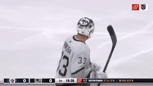 LA Kings player Viktor Arvidsson celebrates after scoring a goal, with teammate Anderson joining the celebration.