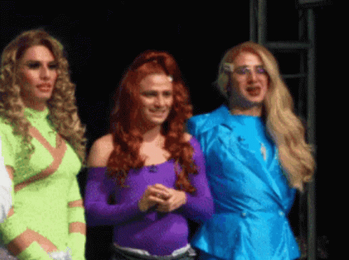 Raga Diamante and Regina Bronx with another drag queen on stage, laughing and celebrating.