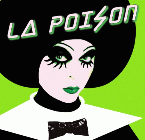 La Poison, a drag queen in a stylized portrait, gives an intense stare.