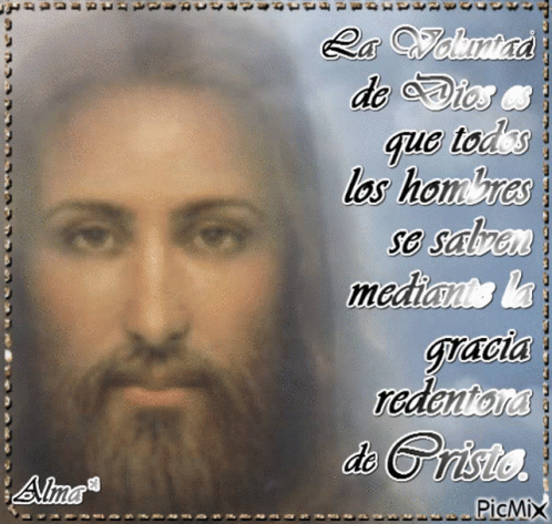 An image of Jesus with the Spanish text "La Voluntad de Dios es que todos los hombres se salven mediante la gracia redentora de Cristo."