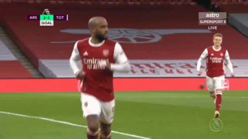 Alexandre Lacazette celebrates his goal for Arsenal during the North London Derby against Tottenham.
