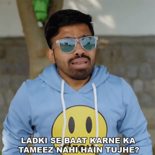 Vibhu Varshney asks, 'You don't have manners to talk to a girl?' while wearing sunglasses and a blue hoodie.