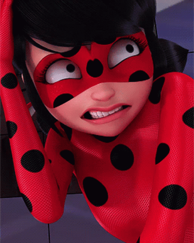 Ladybug from Miraculous: Tales of Ladybug & Cat Noir with a stressed, gritted-teeth expression, hand on her head.