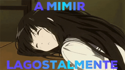 Anime girl sleeping deeply on a desk with the meme phrase 'A Mimir Lagostalmente'.