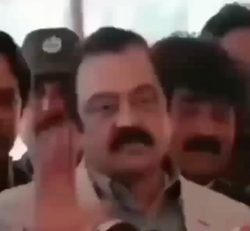 Pakistani politician Rana Sanaullah raises his hand while uttering the strong Punjabi/Urdu phrase 'Lakh Di Lanat'.